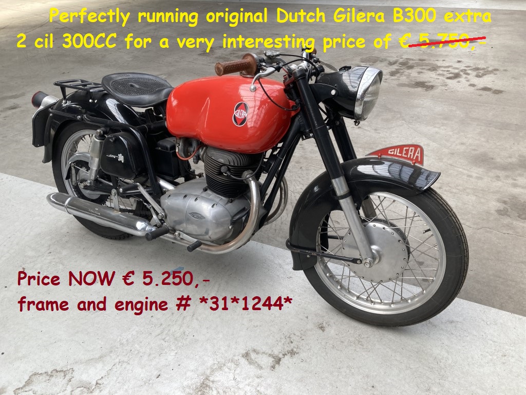 A Gilera 2 cil. 300 CC motor running perfectly. In very nicely restored condition. Has a Dutch registration. The price is for the motor as is.