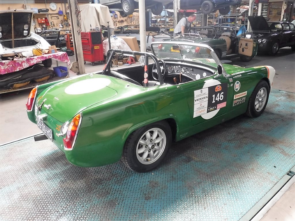 Very good 1963 Austin Healey sprite in rally version. Rebuild engine with now 116 HP, new tyres, brakes, shock absorbers, petrol tank,fuel pump, Weber carburetor. Mechanically in top condition. Comes with Dutch registration, so ready for the next rally. Biggest choice in REAL Classic Cars in the Stolze Collection with more than 450 cars in stock ! From a project to perfect.