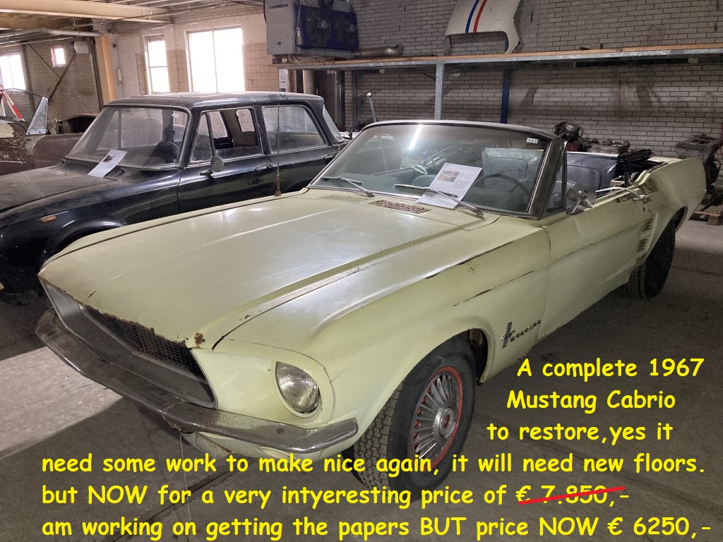 This 1967 Ford Mustang Cabriolet offers excellent potential for restoration or can serve as a donor car for parts. The base is solid, making it ideal for anyone looking for a project or specific parts for another vehicle. Please note: the car currently has no papers. Contact us for more information or to arrange a viewing! Big choice in REAL Classic Cars in the Stolze Collection ! From a project to perfect.