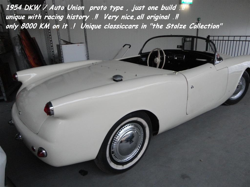 Very nice and original DKW / Auto Union prototype from 1954! Just ONE build! Unique with racing history! Only 8000 KM on it! Biggest choice in REAL Classic Cars in "the Stolze Collection" , with more than 450 in stock.! from a project to perfect .!