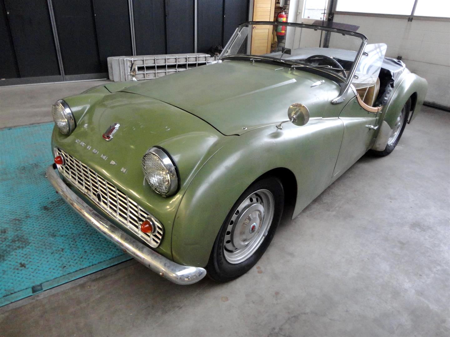 Very nice, original, all solid and complete Triumph TR3A from 1959. Boy what a nice original car with this nice special color. Perfectly driving/running car, you can use it as is. Very nice patina and it has the original engine. Drive it home !