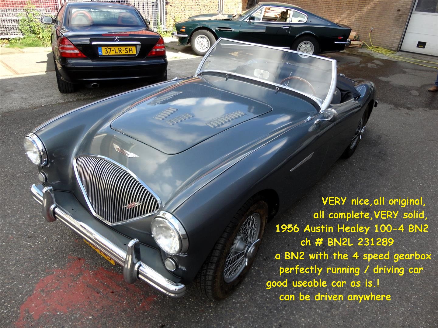 Very nice all original, all complete , very solid Austin Healey 100-4 BN2 with the 4 speed gearbox with overdrive .perfectly running / driving good useable car as is, can be driven anywhere . Biggest choice in REAL Classic Cars in "the Stolze Collection" , more than 450 in stock.! from a project to perfect .!