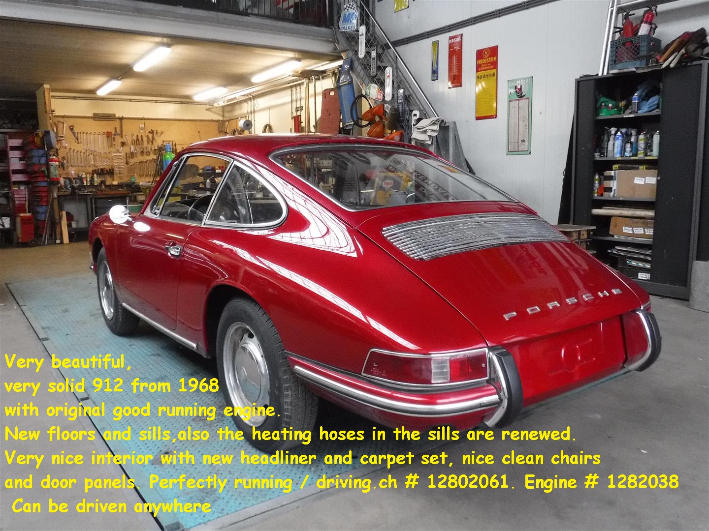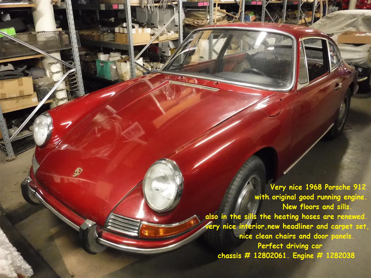 Very beautiful, very solid 912 from 1968 with original good running engine. New floors and sills. The heating hoses in the sills are also renewed. Very nice interior with new headliner and carpet set, nice clean chairs, door panels. Perfect driving. chassis # 12802061. Engine # 1282038 Biggest choice in REAL Classic Cars in "the Stolze Collection" with more than 450 cars in stock ! From a project to perfect .