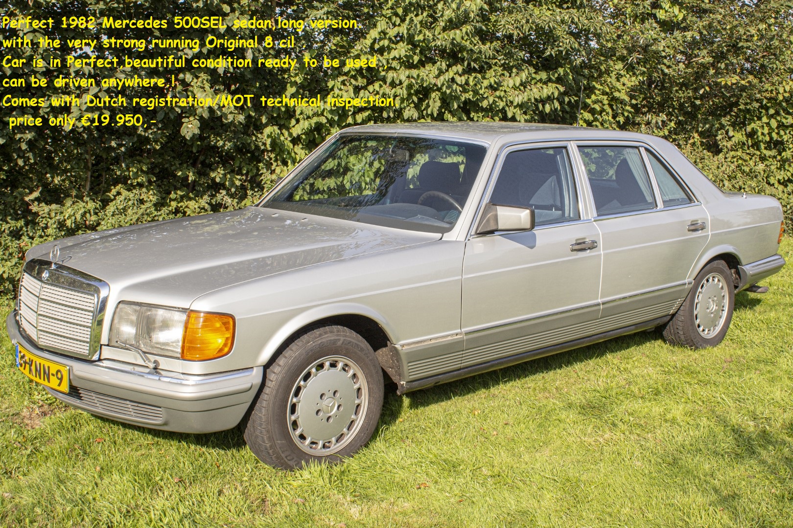 PERFECT 1982 Mercedes 500SEL sedan long version .!! with the perfect running original 8 cyl engine. The car is in perfect condition, as new from the factory. Ready for use, can be taken anywhere. And with a lot of extras: video player with headphones a real directors car. And with a suitcases full of history, invoices. Comes with Dutch registration and MOT. Biggest choice in REAL Classic Cars in "the Stolze Collection" with more than 450 cars in stock ! From a project to perfect.