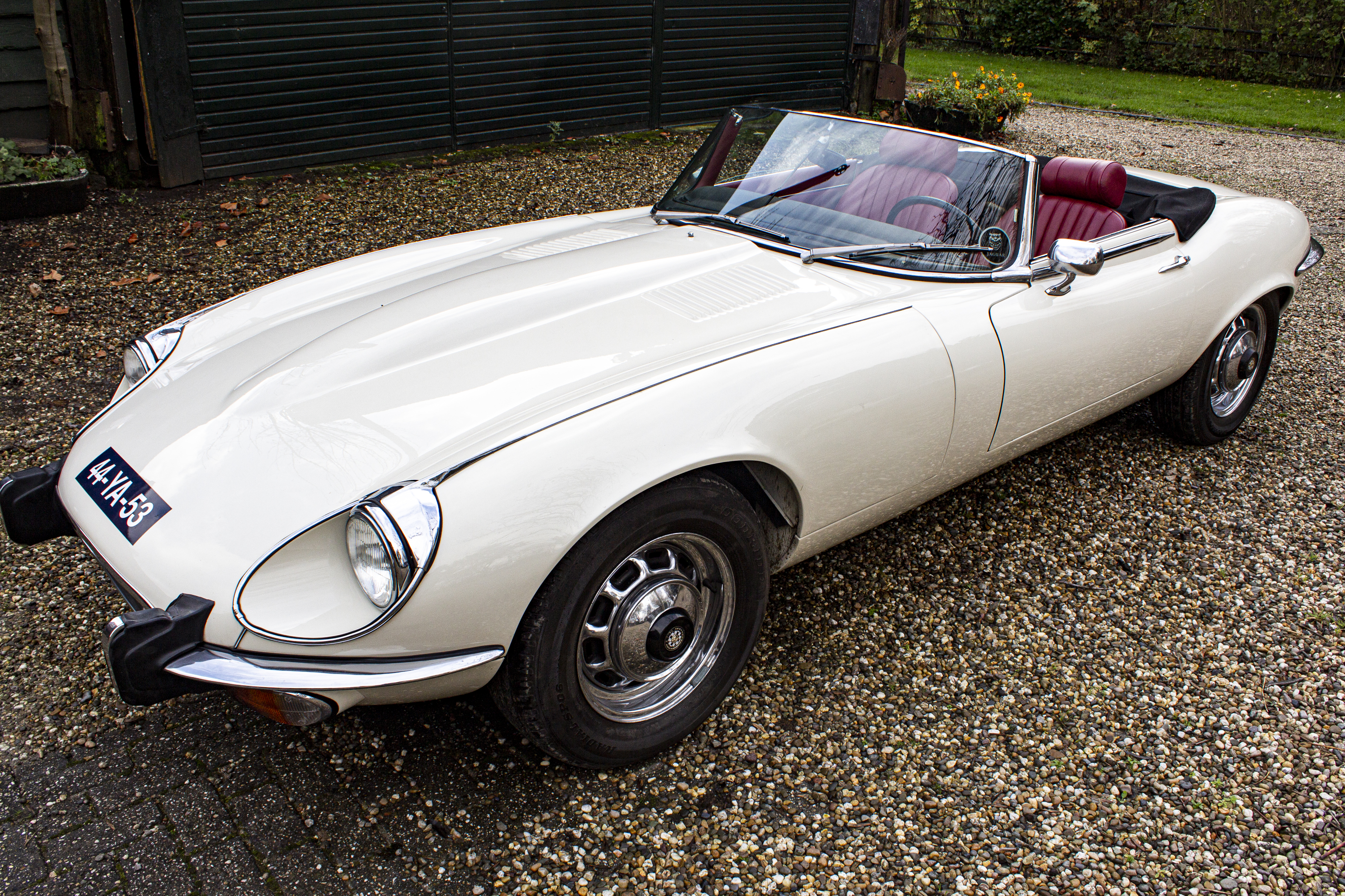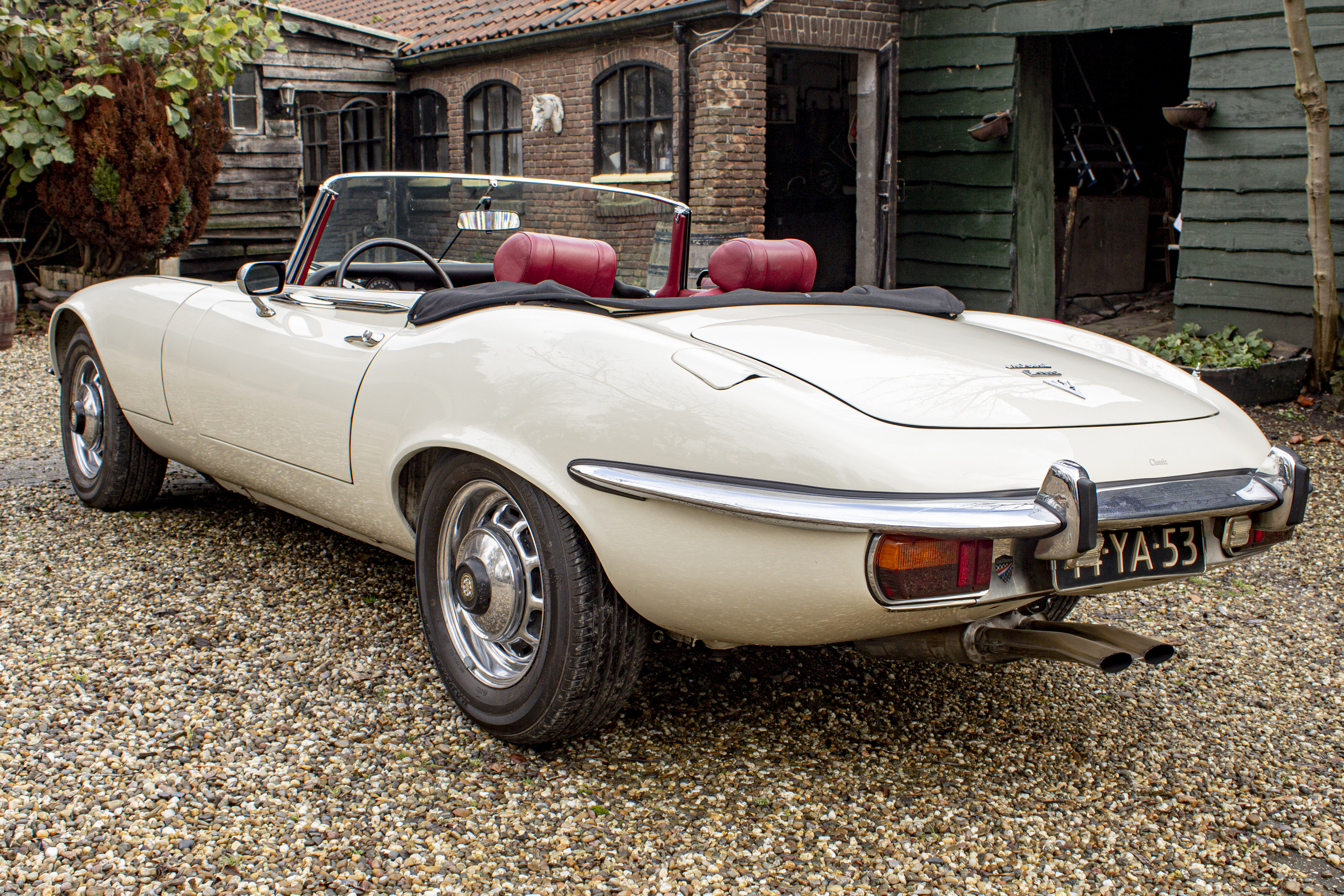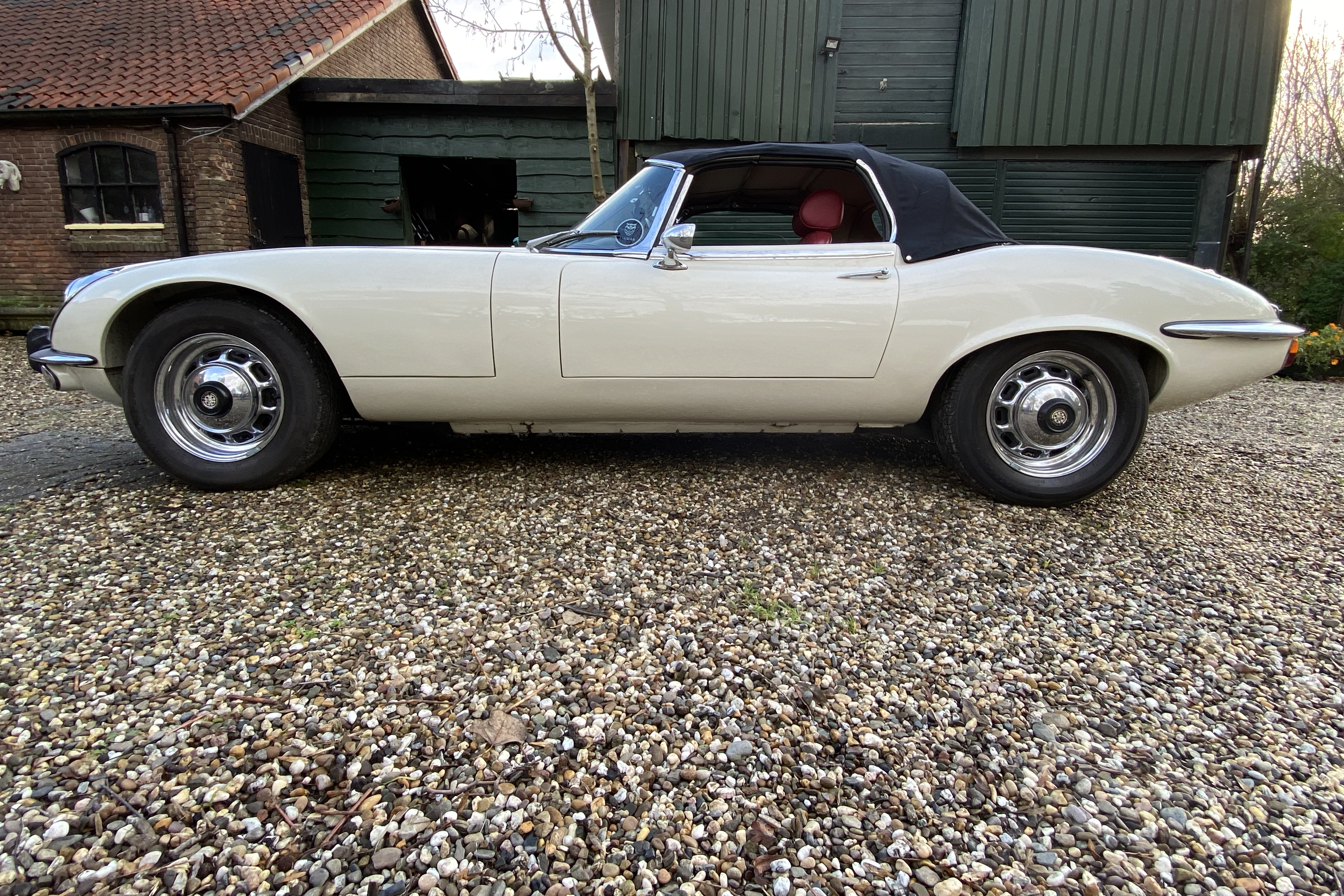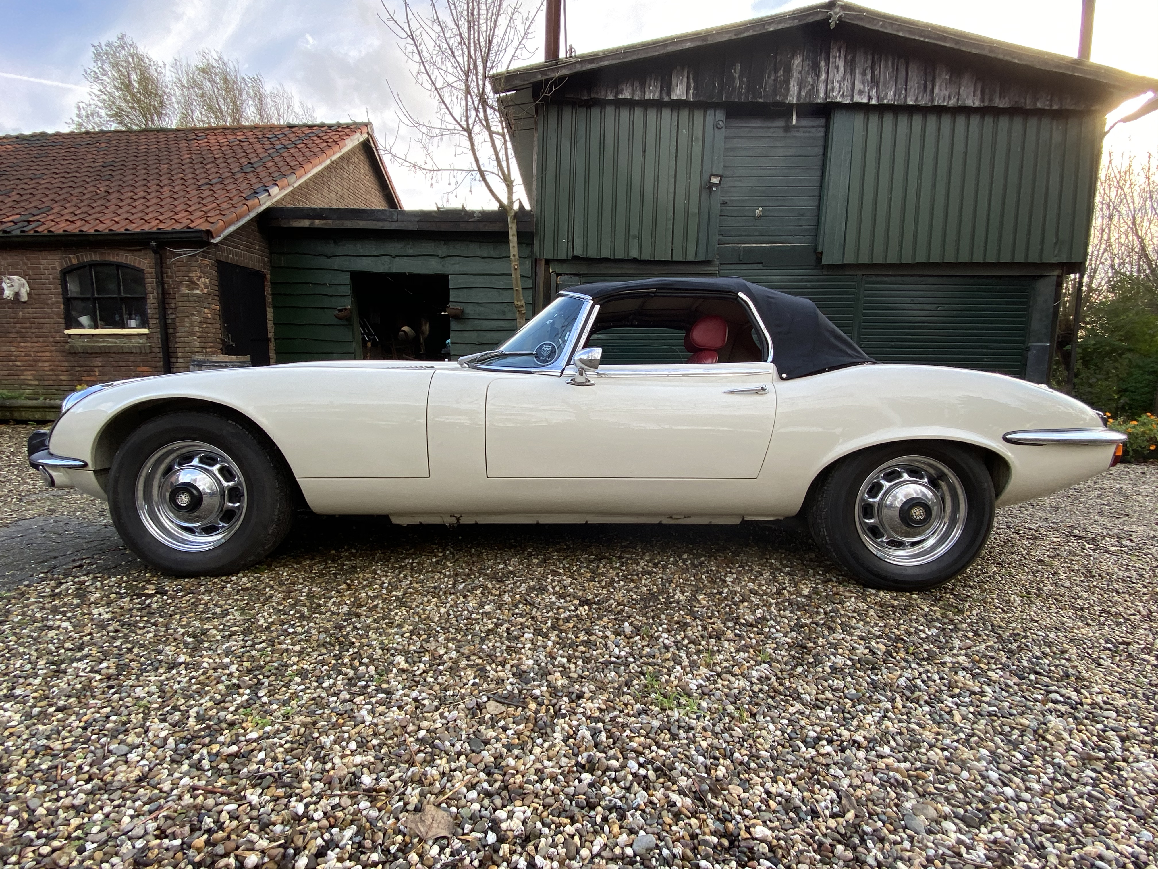 Superb, very beautiful, Jaguar E type series 3 Roadster from 1973 with the good running / driving 5.3 ltr V12 engine and automatic gearbox, all in good working order. Beautiful ivory white color with wonderful red leather interior. Car comes with Dutch registration / MOT, is ready to use. And the complete history is available, pictures and invoices. Biggest choice in REAL Classic Cars in "the Stolze Collection" with more than 450 cars in stock ! From a project to perfect.