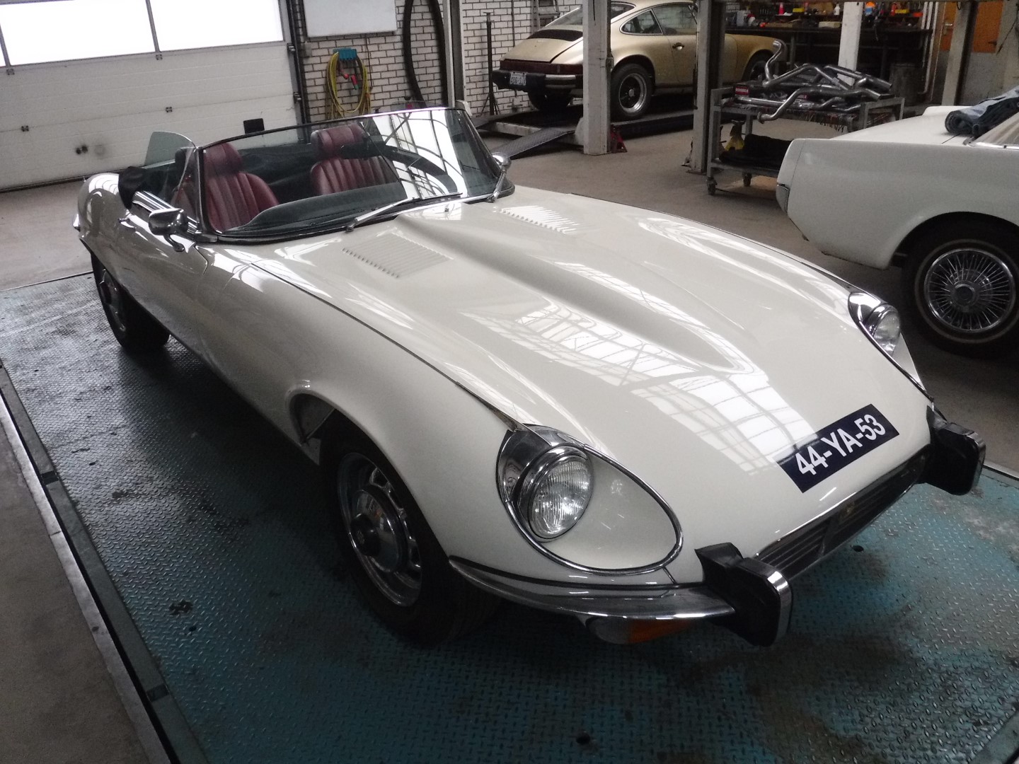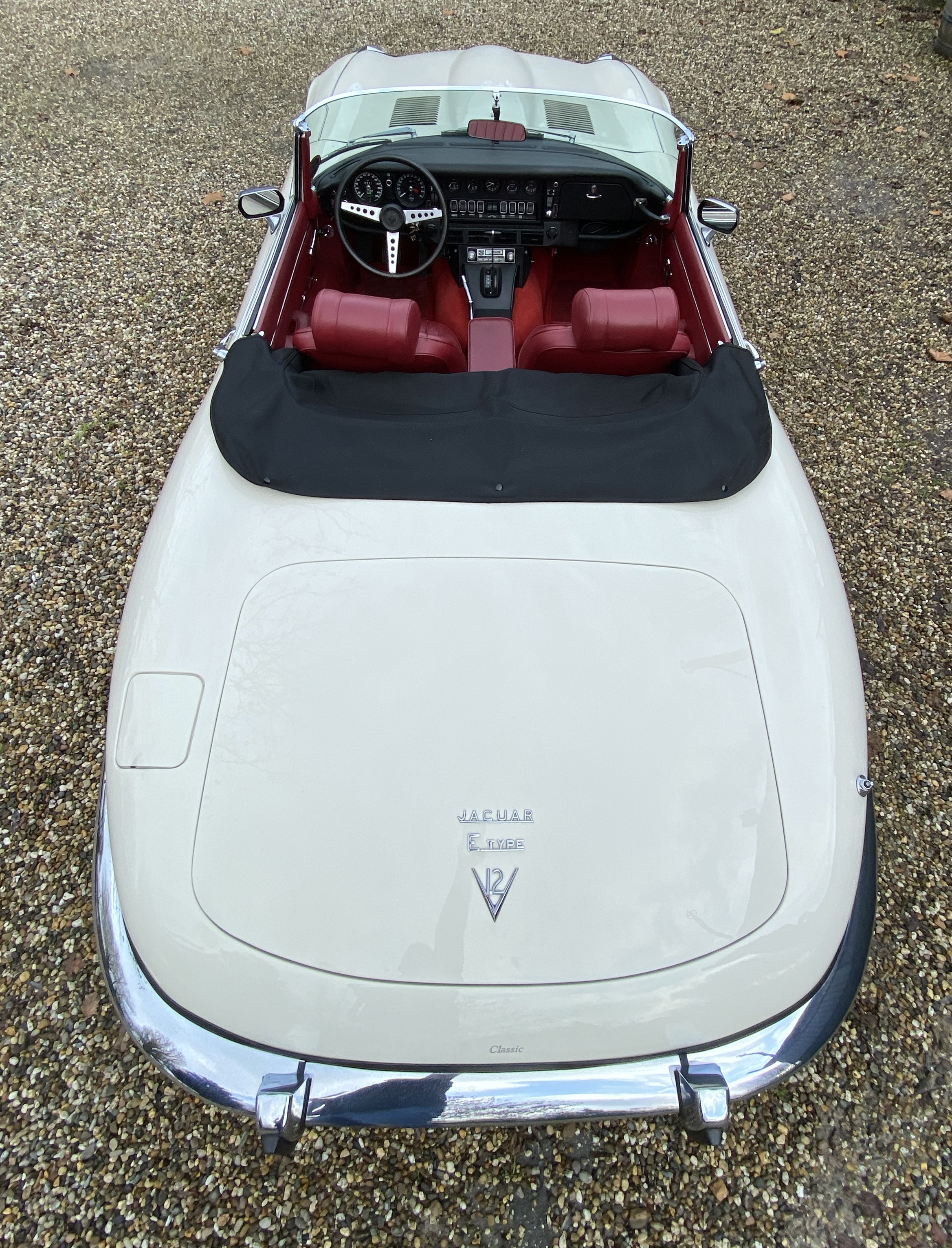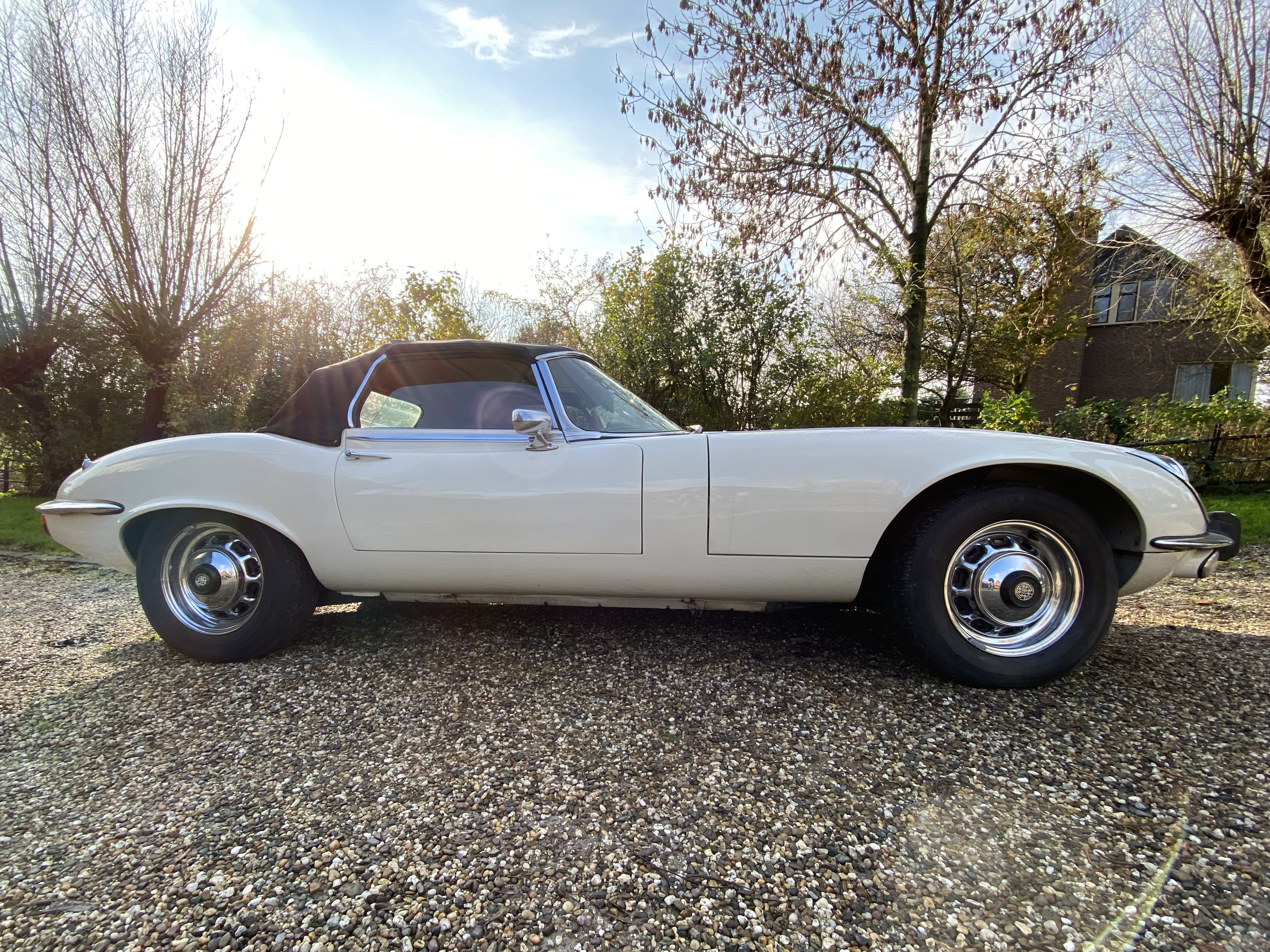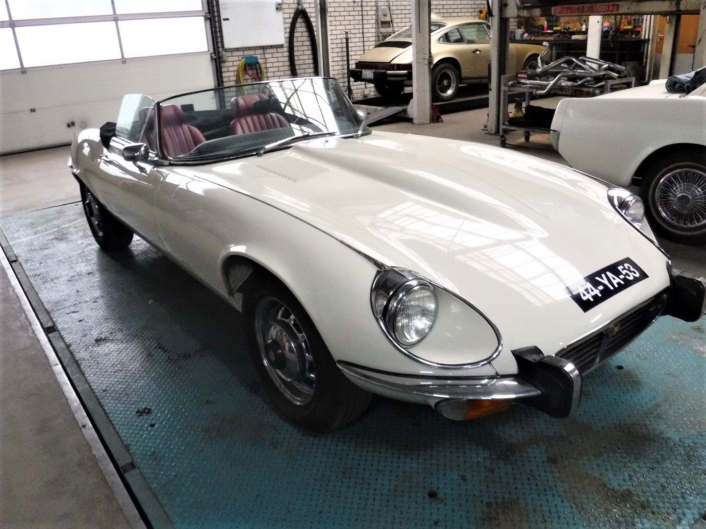 Superb, very beautiful, Jaguar E type series 3 Roadster from 1973 with the good running / driving 5.3 ltr V12 engine and automatic gearbox, all in good working order. Beautiful ivory white color with wonderful red leather interior. Car comes with Dutch registration / MOT, is ready to use. And the complete history is available, pictures and invoices. Biggest choice in REAL Classic Cars in "the Stolze Collection" with more than 450 cars in stock ! From a project to perfect.