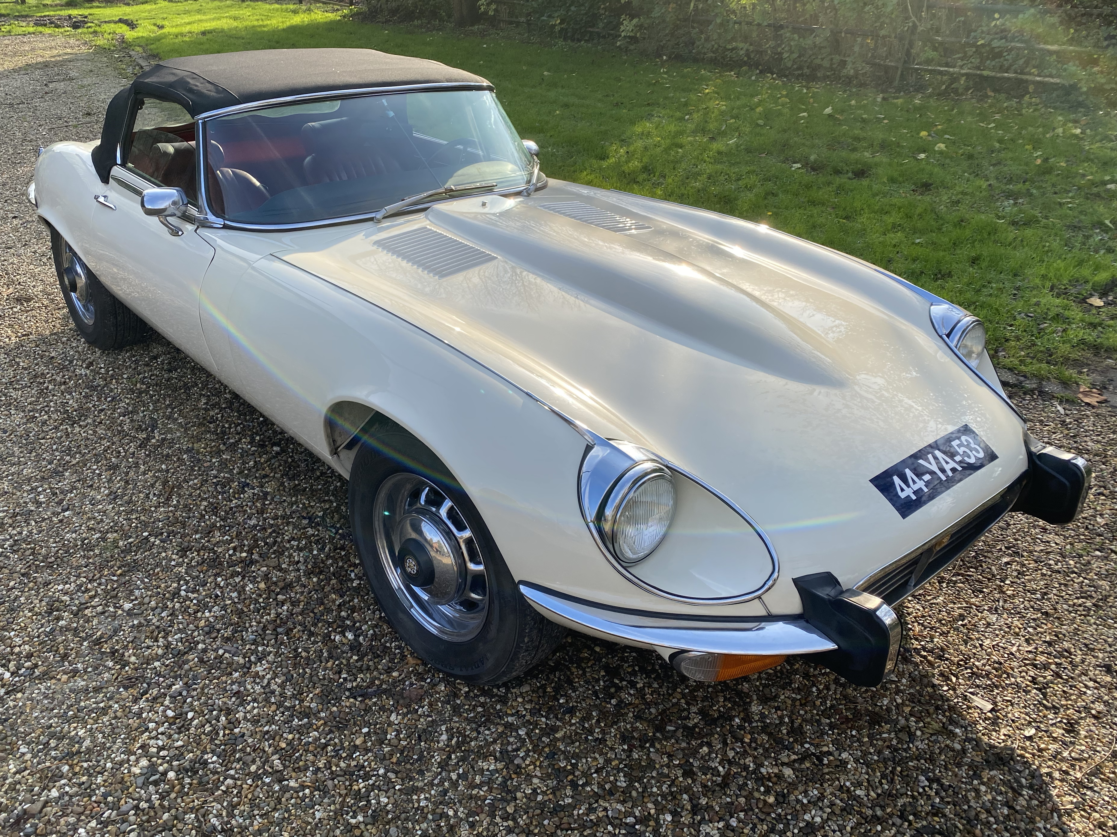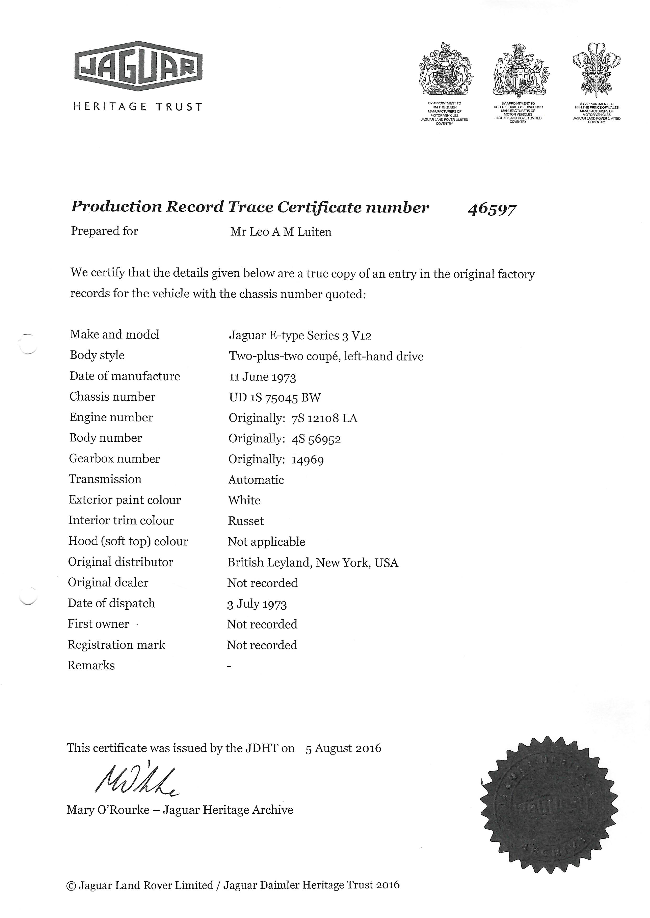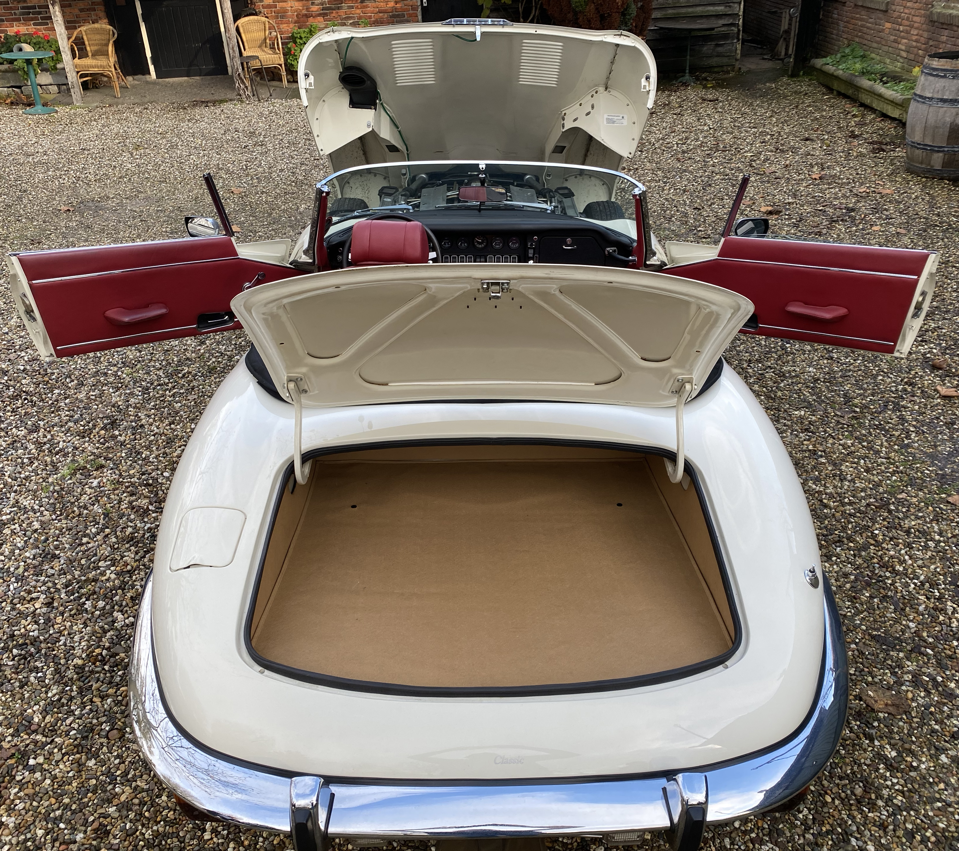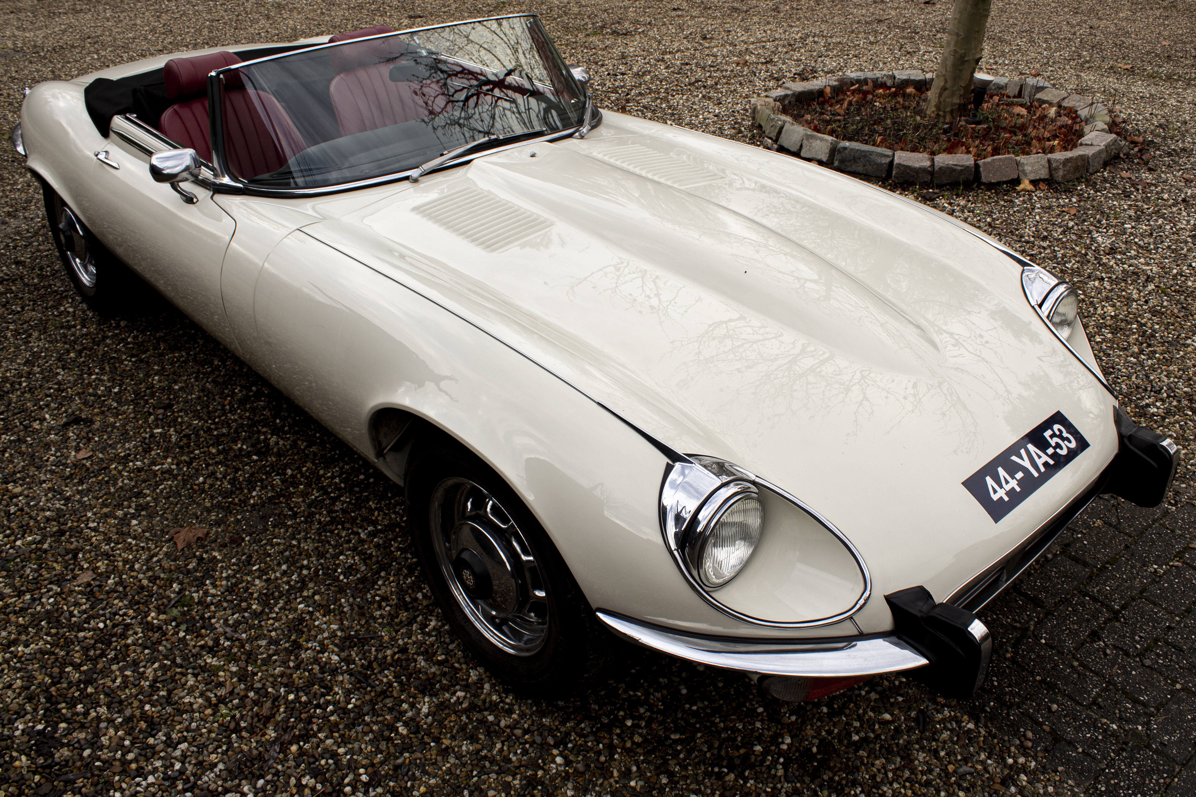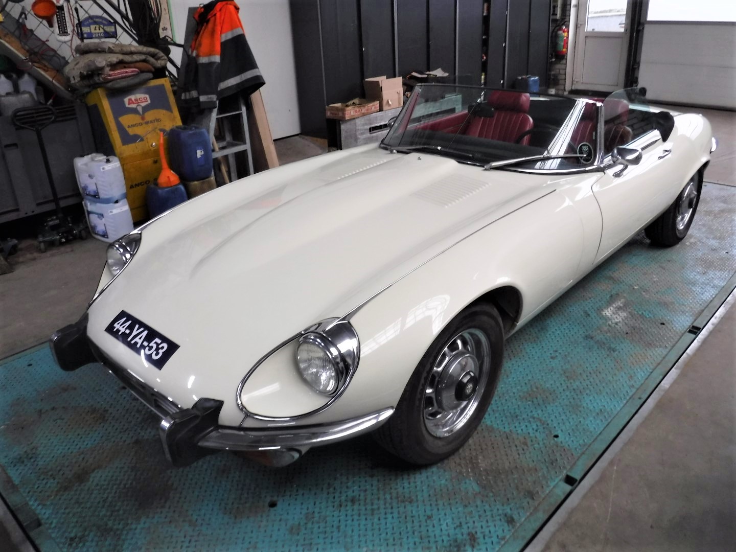 Superb, very beautiful, Jaguar E type series 3 Roadster from 1973 with the good running / driving 5.3 ltr V12 engine and automatic gearbox, all in good working order. Beautiful ivory white color with wonderful red leather interior. Car comes with Dutch registration / MOT, is ready to use. And the complete history is available, pictures and invoices. Biggest choice in REAL Classic Cars in "the Stolze Collection" with more than 450 cars in stock ! From a project to perfect.