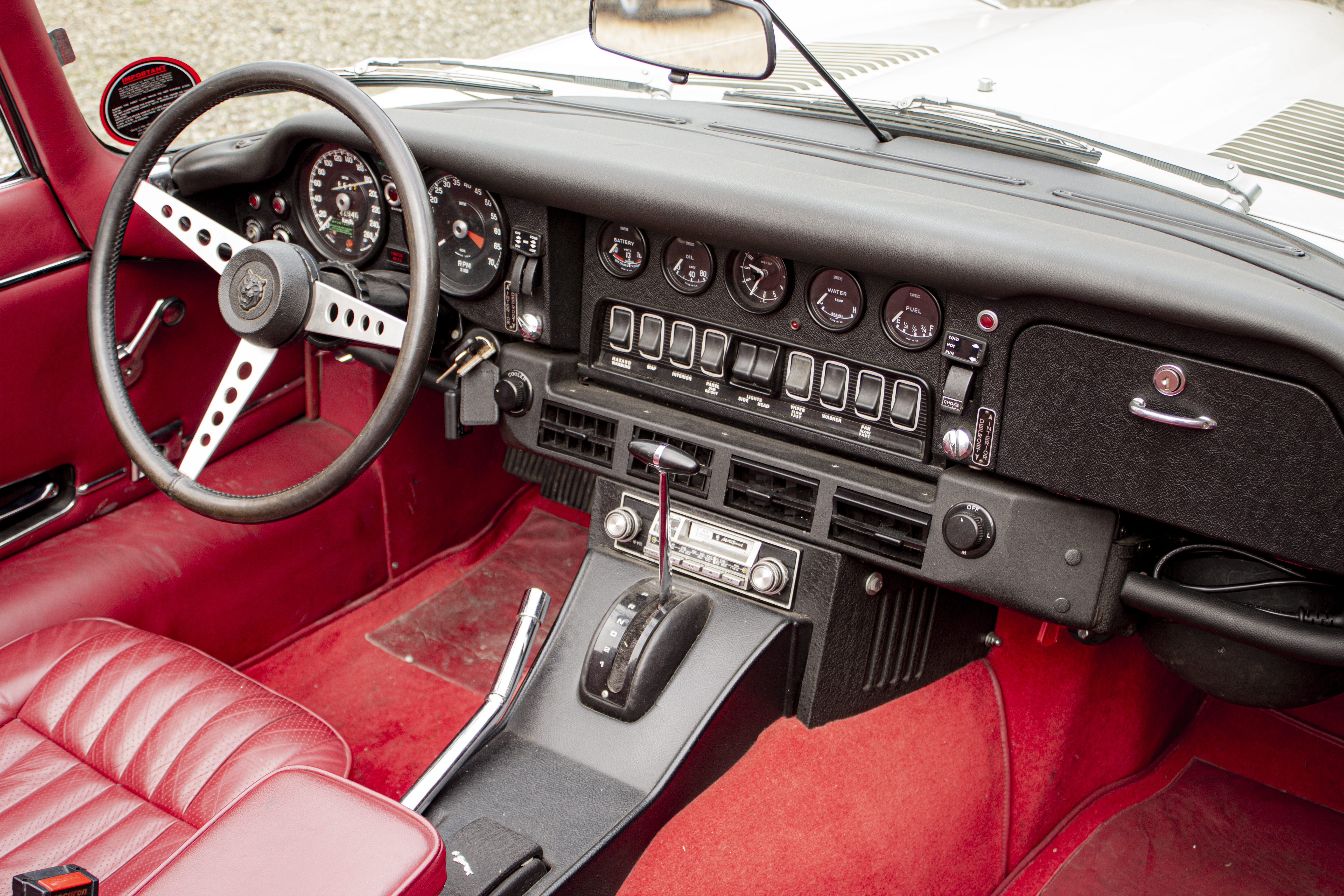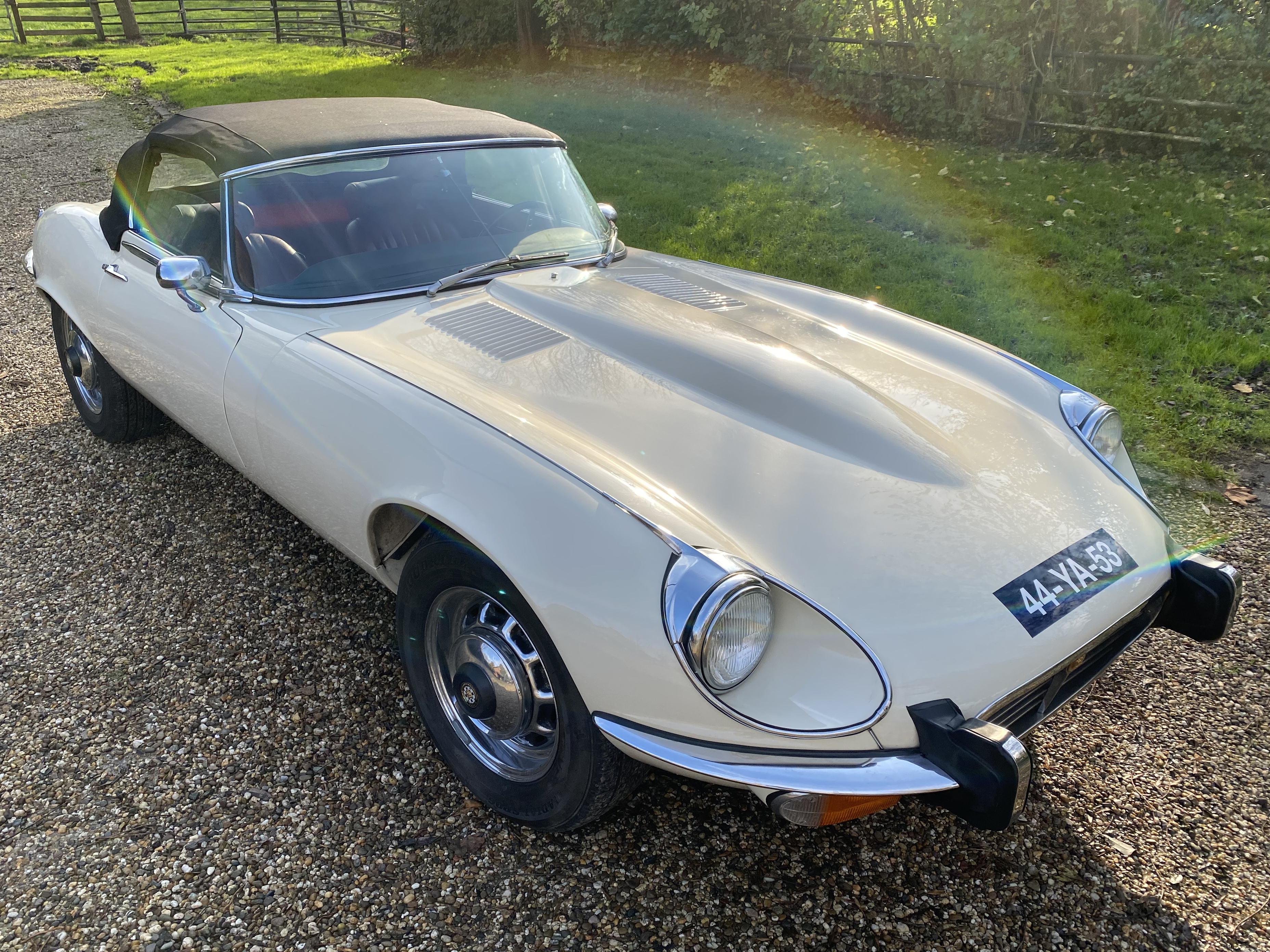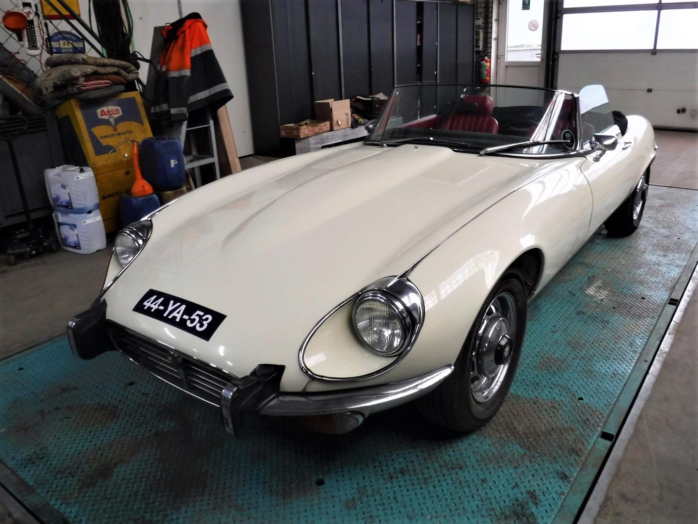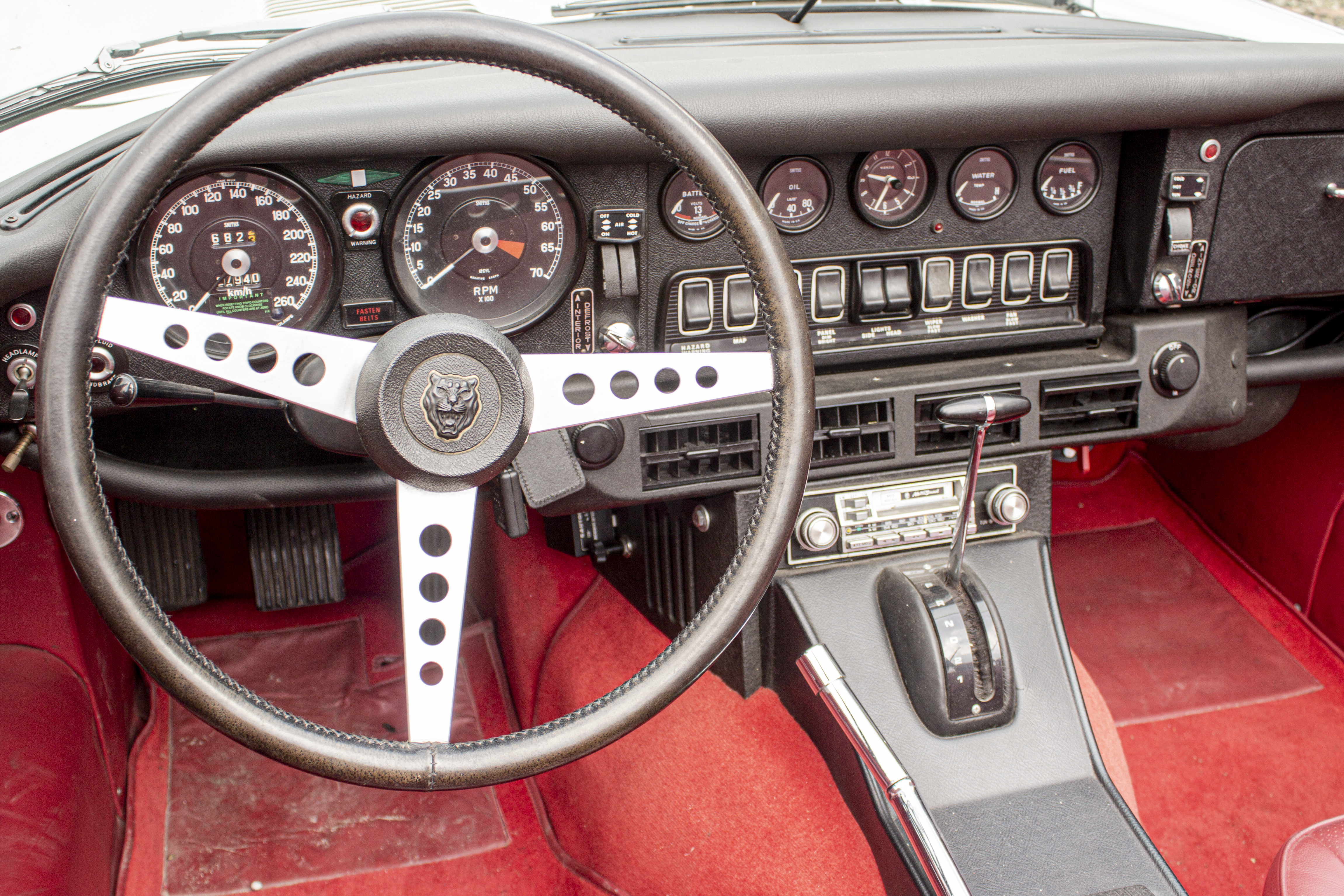 Superb, very beautiful, Jaguar E type series 3 Roadster from 1973 with the good running / driving 5.3 ltr V12 engine and automatic gearbox, all in good working order. Beautiful ivory white color with wonderful red leather interior. Car comes with Dutch registration / MOT, is ready to use. And the complete history is available, pictures and invoices. Biggest choice in REAL Classic Cars in "the Stolze Collection" with more than 450 cars in stock ! From a project to perfect.