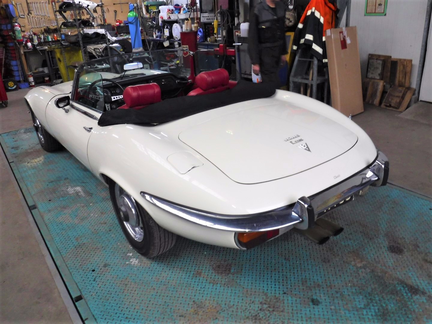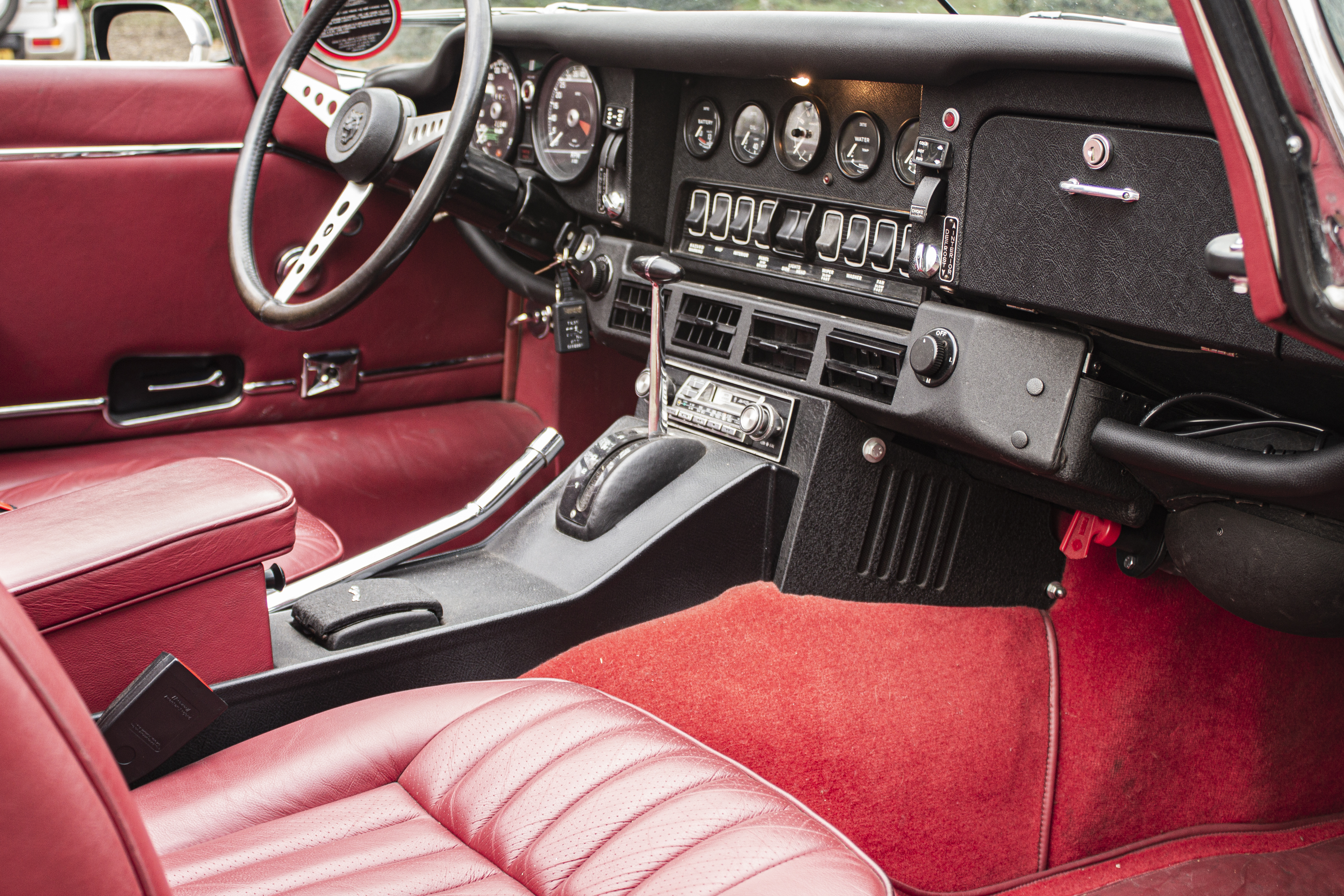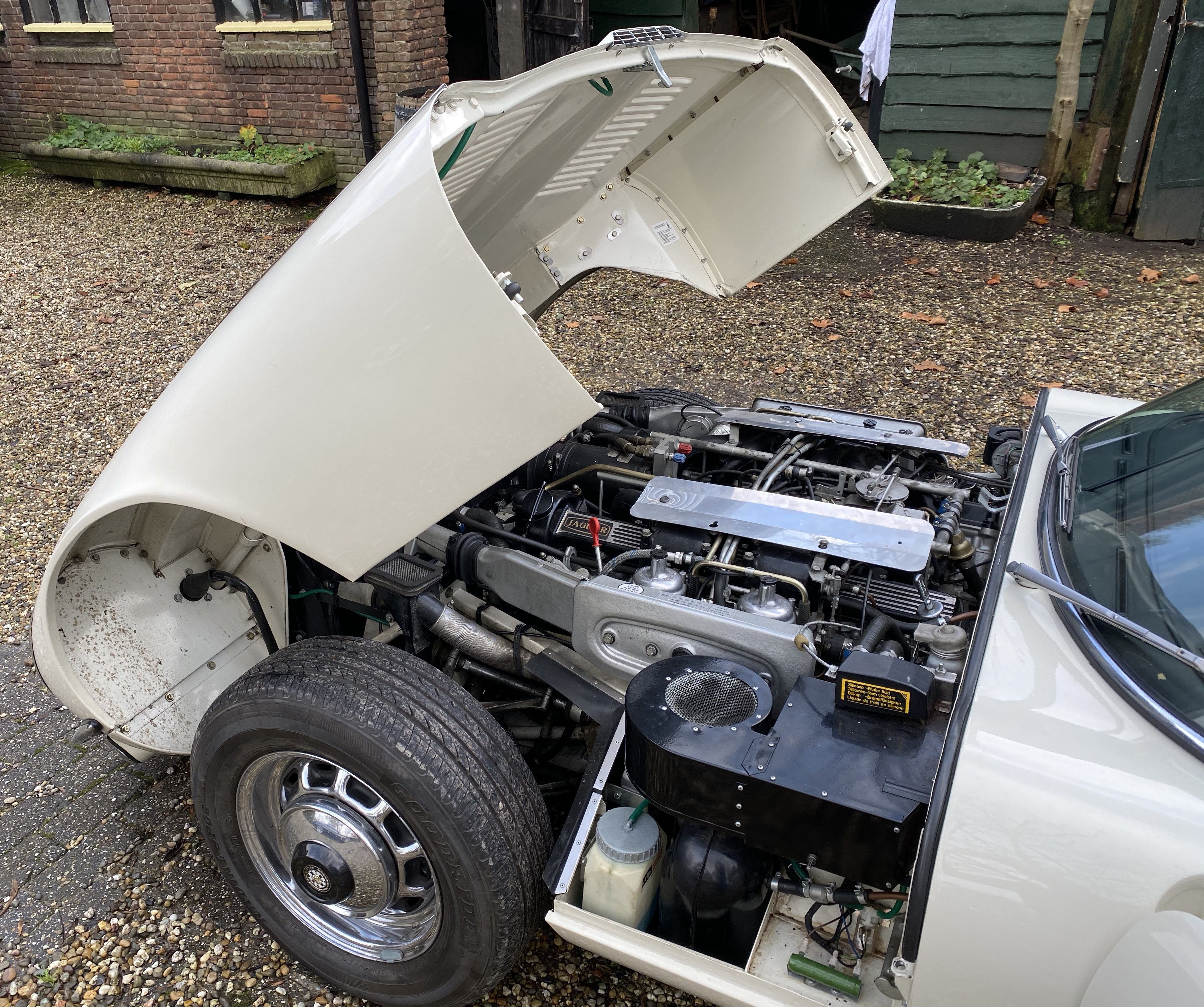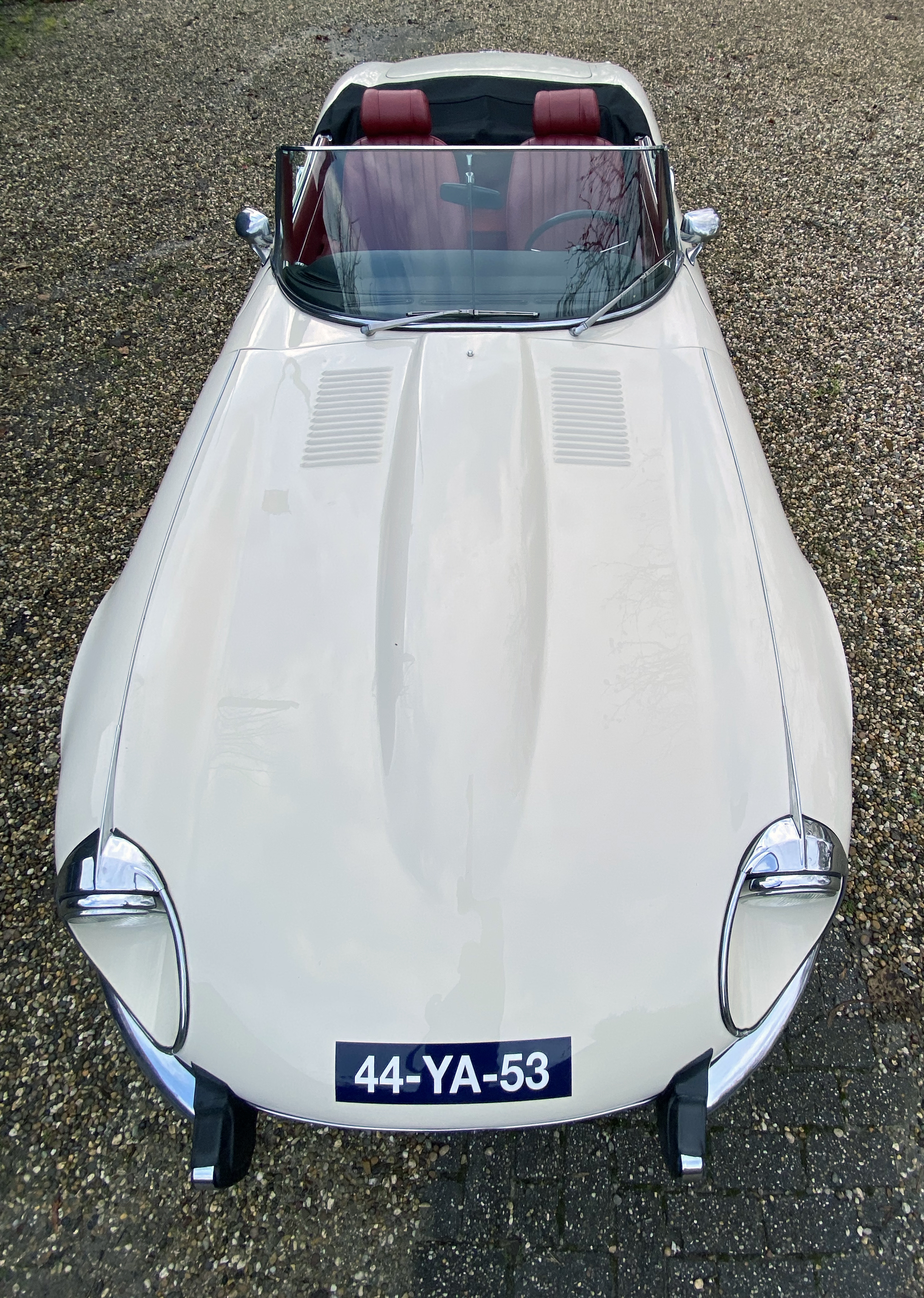 Superb, very beautiful, Jaguar E type series 3 Roadster from 1973 with the good running / driving 5.3 ltr V12 engine and automatic gearbox, all in good working order. Beautiful ivory white color with wonderful red leather interior. Car comes with Dutch registration / MOT, is ready to use. And the complete history is available, pictures and invoices. Biggest choice in REAL Classic Cars in "the Stolze Collection" with more than 450 cars in stock ! From a project to perfect.
